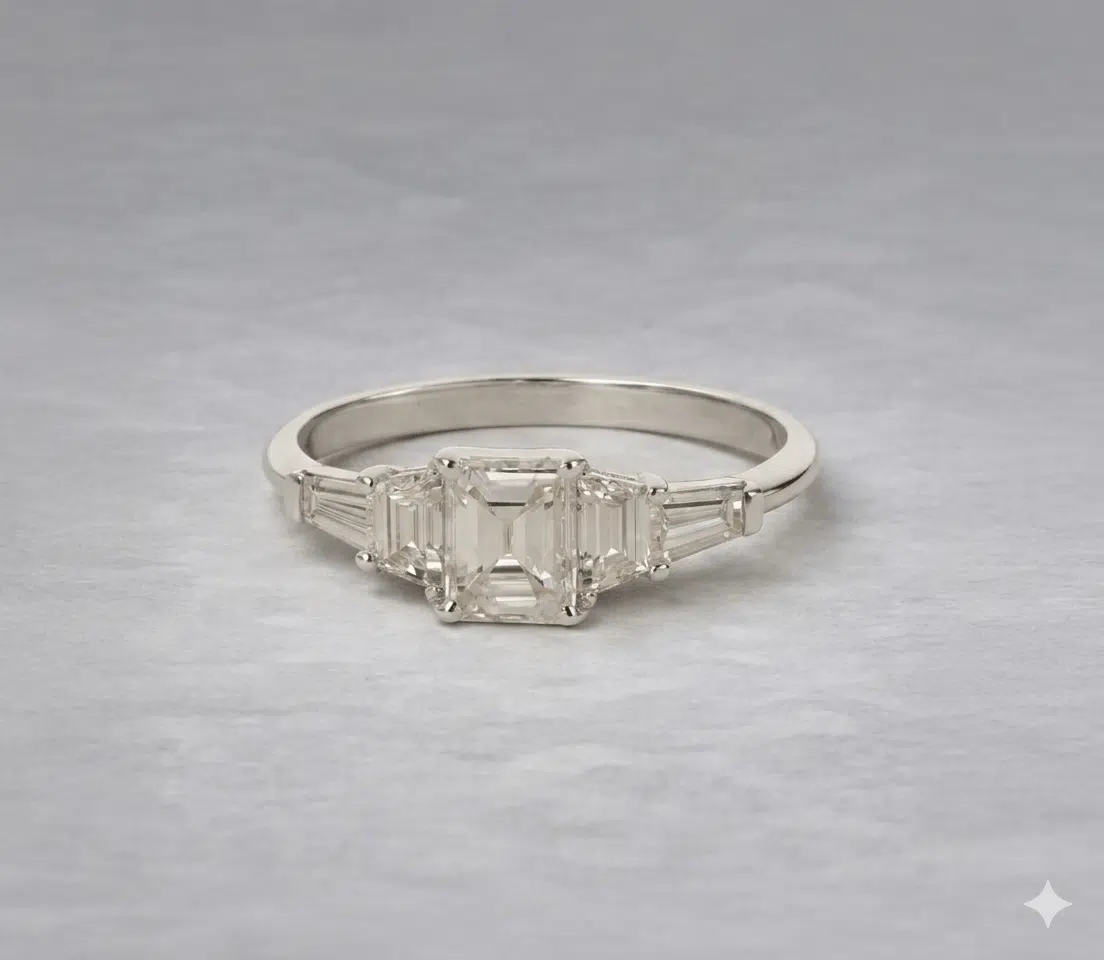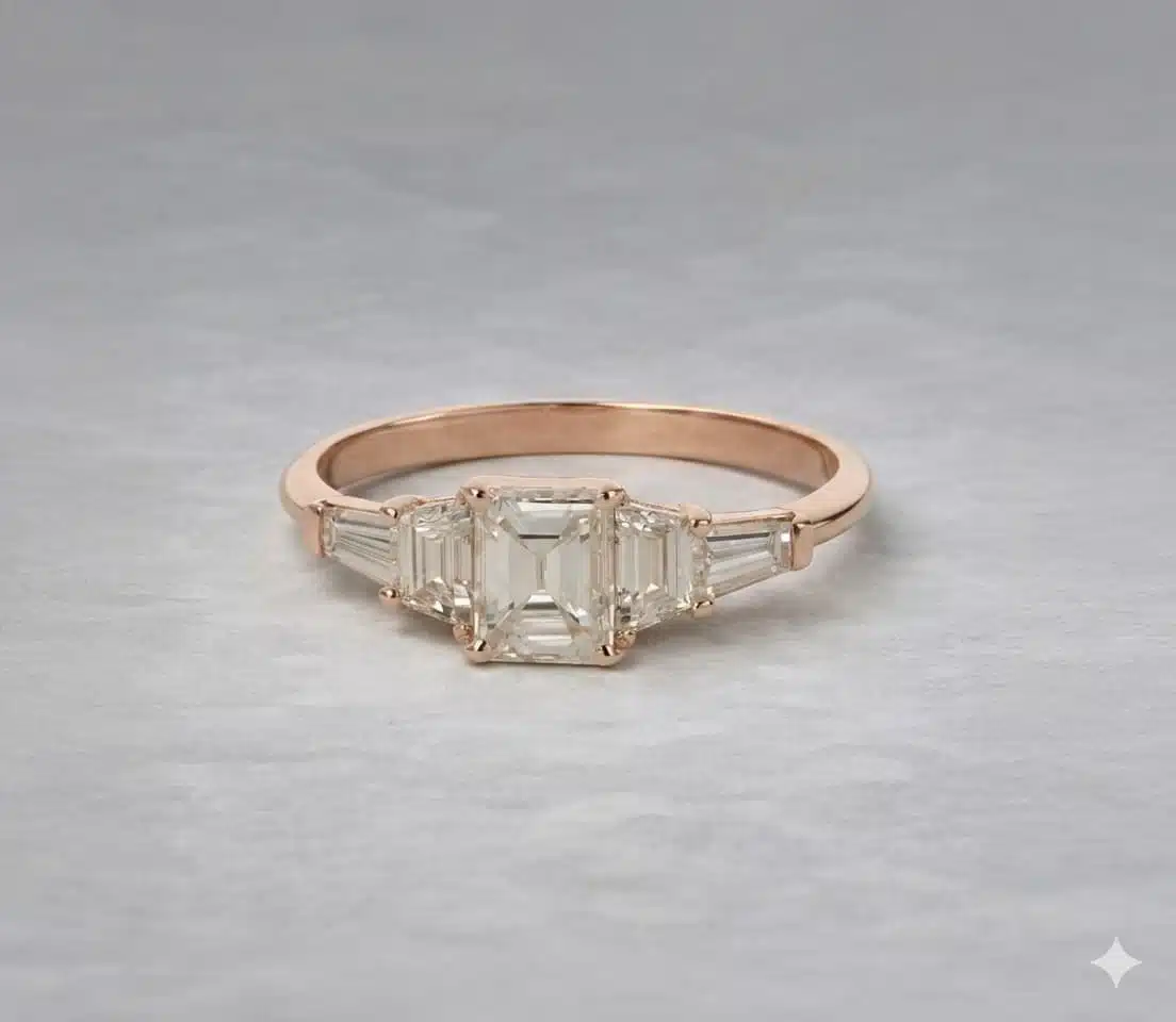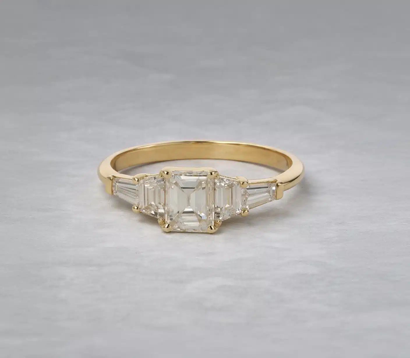 טבעת בסגנון ארט דקו עכשווי עם קווי מתאר גאומטרים. טבעת מיוחדת במינה אשר משלבת אבנים מלבניות בסגנונות שונים. האבנים בעלות החיתוכים והמראה המלבני משוות לטבעת מראה קלאסי ויוקרתי מתקופות אחרות. אם את אוהבת סגנון וינטג׳י אבל בסטייל זו הטבעת בשבילך.